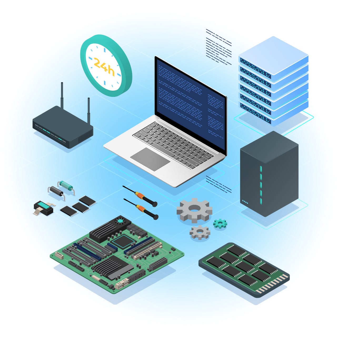 - Comprehensive Repair Services: We repair all types of IT hardware, from desktops and laptops to servers and networking equipment.